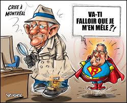 Le clown Tremblay a manifesté une colère à rebours, une stupéfaction après les faits, il a hurlé un mécontentement grotesque à l'égard de la police. Il a stipulé que jamais il n'avait été mis au courant et c'est à partir de là qu'on s'est tous mis à rire. Rarement n'auront nous eu un maire au courant de si peu dans l'histoire de la politique Montréalaise. Le caricaturiste Chapleau a l'habitude de dessiner le maire Tremblay en lui faisant jouer perpétuellement le rôle du chevreuil ahuri et immobile au beau milieu de l'autoroute face à la voiture qui fonce. Ça dit tout.