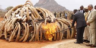 On a d'abord stocké, puis brûlé 105 tonnes d'ivoire dans un parc national de Nairobi. La quantité d'ivoire totalisait la somme d'ivoire extraite sur à peu près 6700 éléphants. C'est pour justement envoyer le message que le Kenya a à coeur le bien de ses éléphants, ne considère pas légitime le marché de l'ivoire (principalement populaire en Asie) et dans le but d'enrayer le braconnage, qu'il a fait ce qu'il a fait.