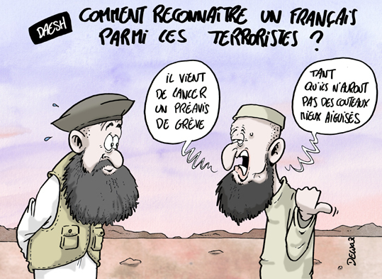 Un déséquilbré désespéré. Deux termes qui sont aussi propres au terroriste en général, mais qui ne sont pas nécessairement une courroie liant le terroriste à l'État Islamique tout le temps. Un obssessif-compulsif n'est pas automatiquement alcoolique. Mais l'alcoolique est victime d'un réflexe obssessif-compulsif. Vous voyez la nuance?