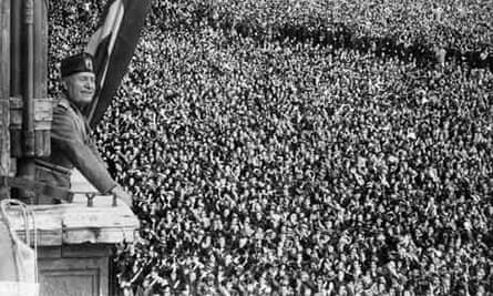 Mussollini, appelé aussi Il Duce, a livré plusieurs discours tristement historiques du balcon surplombant la Piazza Venezia de Rome. C'est là qu'il a annoncé l'empire italien de 1936 et 4 ans plus tard, il déclarerait de ce même balcon, la guerre à la France et à la Grande-Bretagne. On a aussi fait des montages parallèles avec le film de propagande Nazie de Leni Riefenstahl, Triumph of the Will, et les images cadrées ce soir-là. Des exercices comiques du genre en disent beaucoup sur la bêtise humaine. Il ne fait aucun doute qu'on "propagandait" ce soir-là.