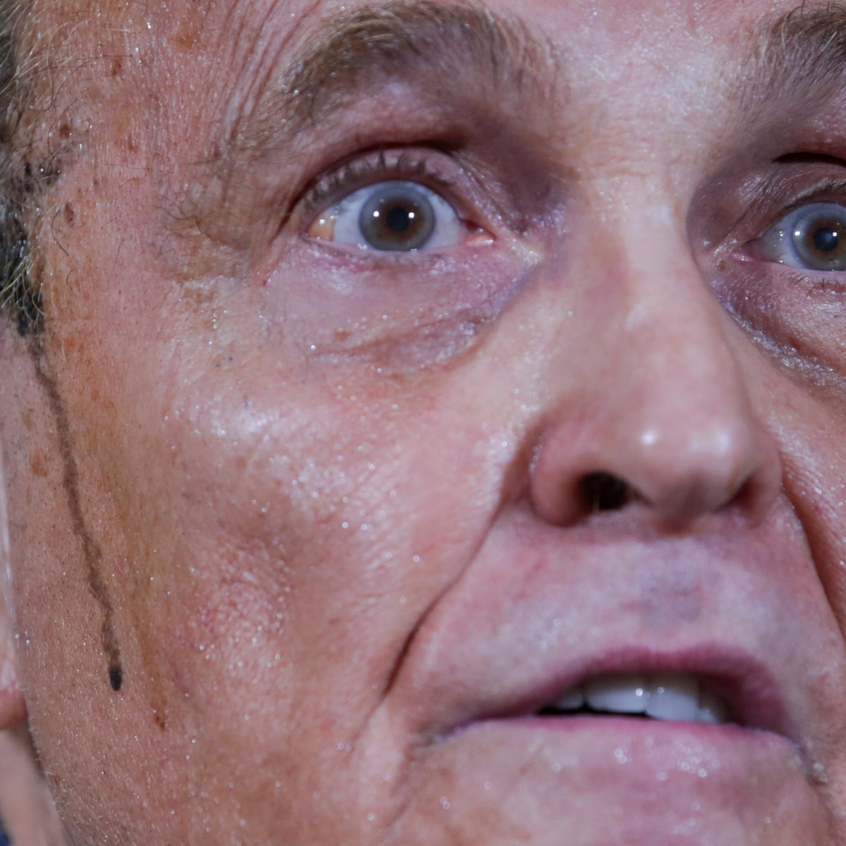 Cette fois, jeudi dernier, on avait mieux calculé le site de la prestation: les quartiers généraux du Comité National des Républicains, à Capitol Hill. Si le lieu était plus salubre, le contenu de ses propos était tout aussi...délirant. L'ancien maire de New York, exposé longuement aux lumières de la télévision pendant 40 minutes, a accusé Joe Biden et son parti d'avoir orchestré un élaboré système frauduleux pan-national, suant comme un lutteur de sumo dans un sauna. Il a été forcé, à un certain moment, d'essuyer d'un mouchoir ce qui a vraisemblablement été une goutte de colorant noir sur chacune de ses tempes. Quand il a finalement cédé le micro à un autre membre de "l'équipe de rêves" d'avocats du président sortant-qui-ne-veut-pas-sortir, il a empoigné vivement une bouteille d'eau et l'a bue tel un chameau dans un oasis.