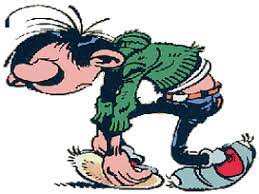 Un immense point d'interrogation fragilisé rouge, suivi d'un point d'exclamation tout aussi fragilisé surplombaient ma tête étonnée. Christ...c'était l'instrument de musique "perfectionné" par Gaston Lagaffe!!! Je parlais maintenant dans des phylactères, JE VIVAIS MAINTENANT DANS UNE BD!!!
